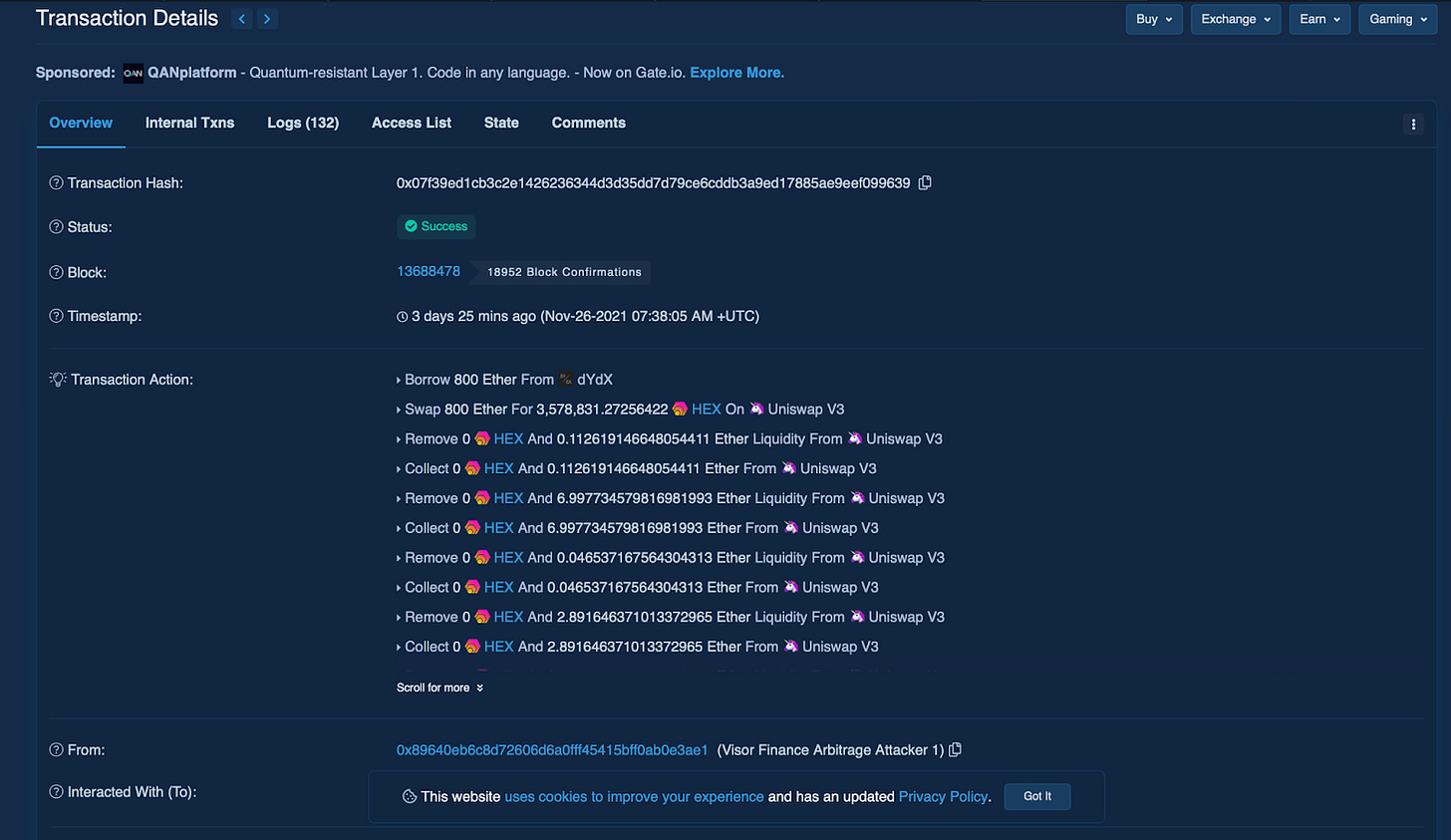 Visor Finance, DeFi protocol for liquidity management, was updated of a flashloan vulnerability which was exploited by an attacker but the team’s behaviour acknowledging the issue caused outrage on Twitter.
